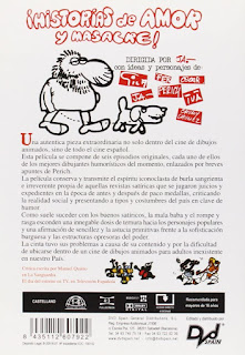 No voy a comentar a fondo el contenido de esta película, pero es una maravilla, reflejo de una sociedad española ávida de una libertad tanto tiempo arrebatada. Libertad social y también libertad sexual, con unos ARTISTAS que no dudaron en utilizar toda su sátira vitriólica y humor negro, arremetiendo también contra el anterior régimen y los que aún querían perpetuarlo. Este es el primer largometraje de animación para adultos realizado en este país, dirigido por Jordi Amorós, el nombre auténtico del dibujante Ja, que además era el director de la compañía que la realizó, Estudios Equip, posteriormente renombrada como Cinenik. En ella, además del propio Ja, encontramos la colaboración de los mejores humoristas gráficos de la época, curtidos en publicaciones como la seminal Hermano Lobo, El Papus o El Jueves. Consta de siete episodios diferentes que a continuación os reseñaré, pero tengo que mencionar que al comienzo aparece como "invitado especial" Manuel Vázquez (el creador para la editorial Bruguera de Anacleto o Las hermanas Gilda) en una imitación de las presentaciones que hacía Walt Disney en su programa televisivo, pero en cutre; una idea genial. Además se incluyen diversos sketches de El Perich.
